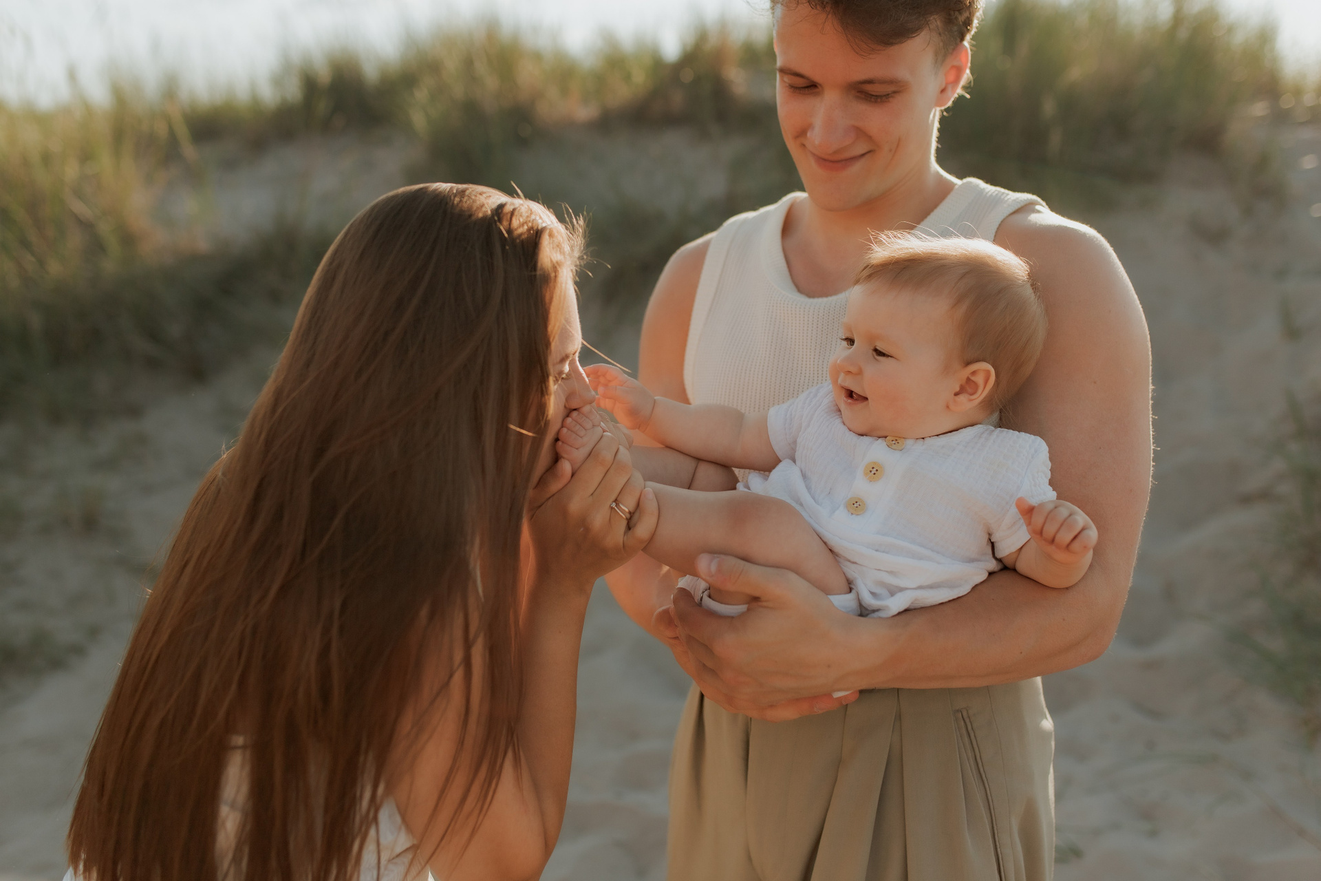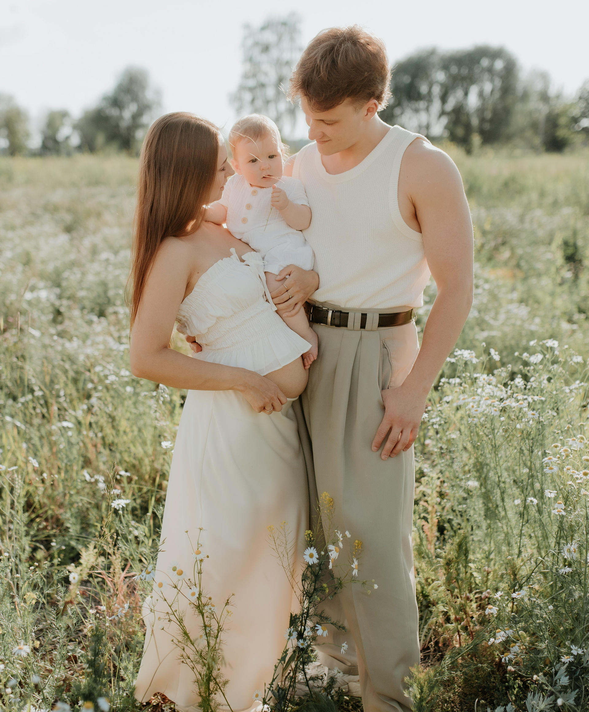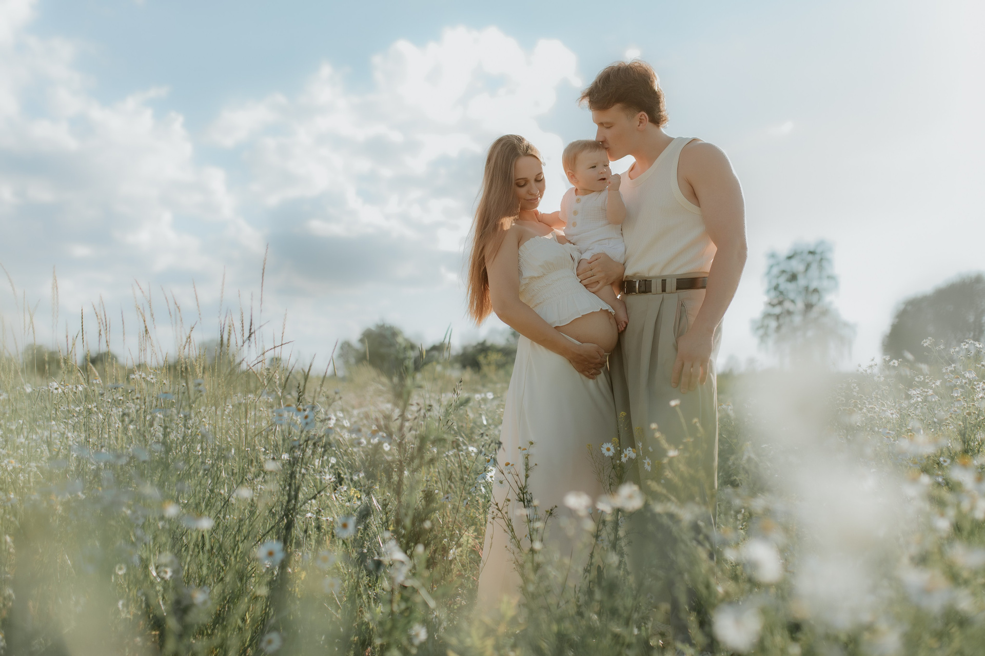 A family photoshoot on a sunny summer day with warm and joyful moments.