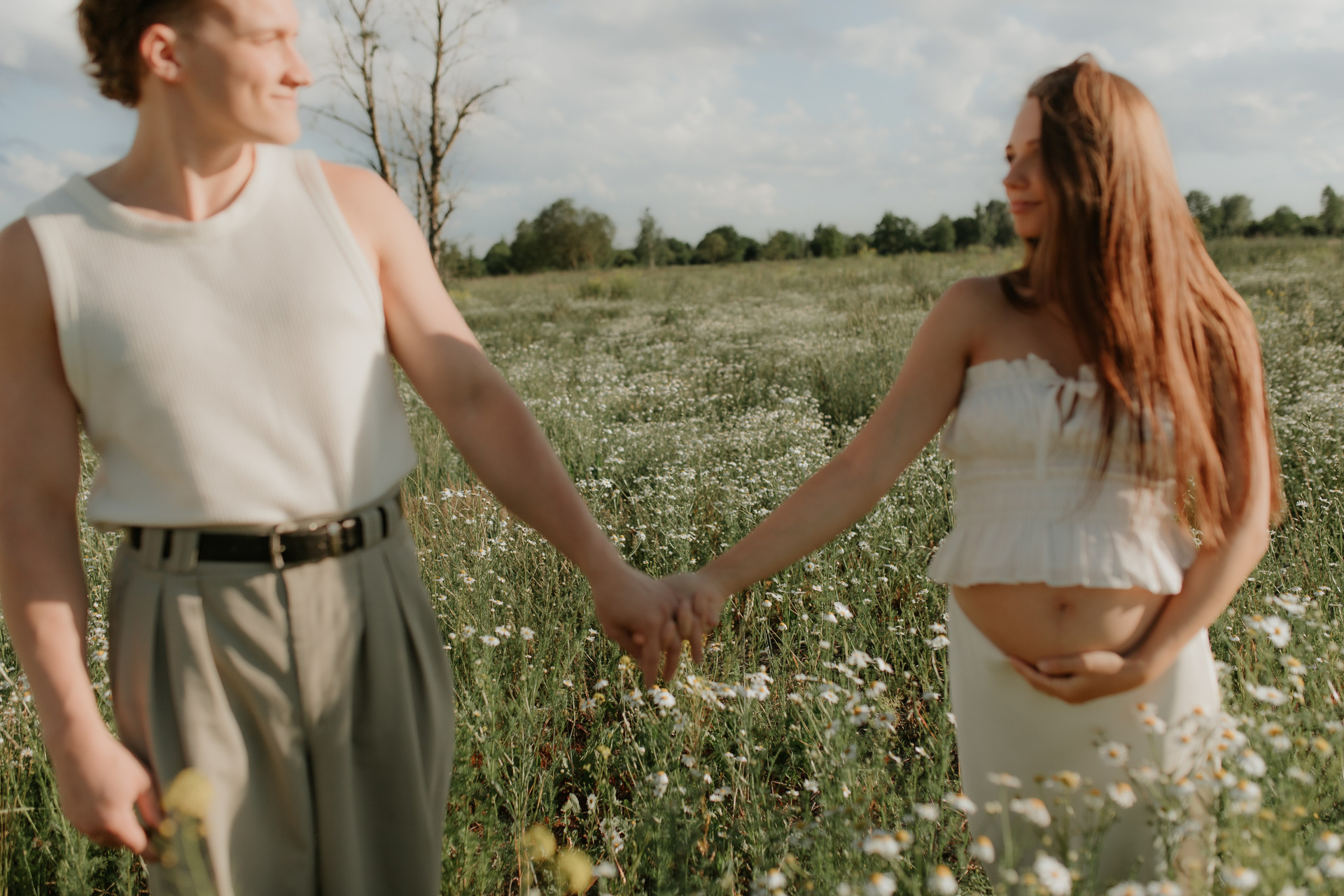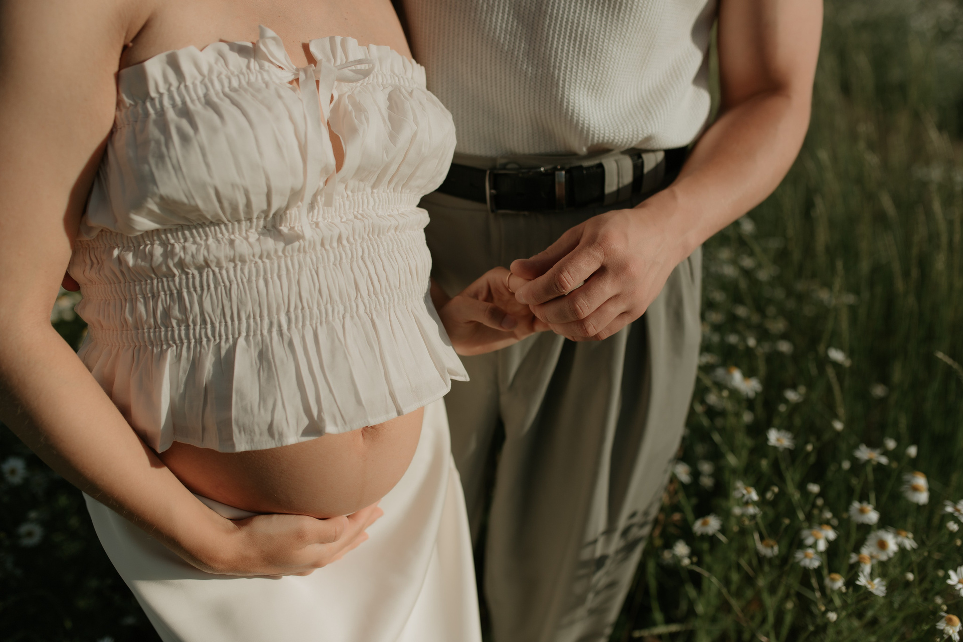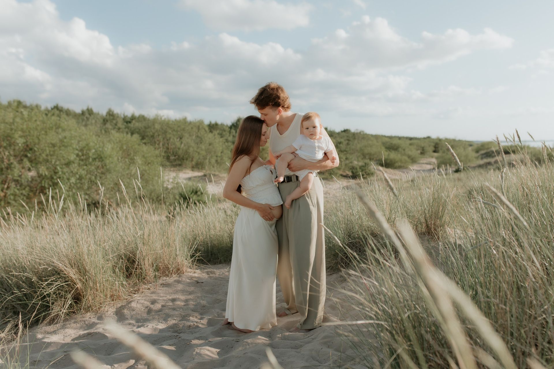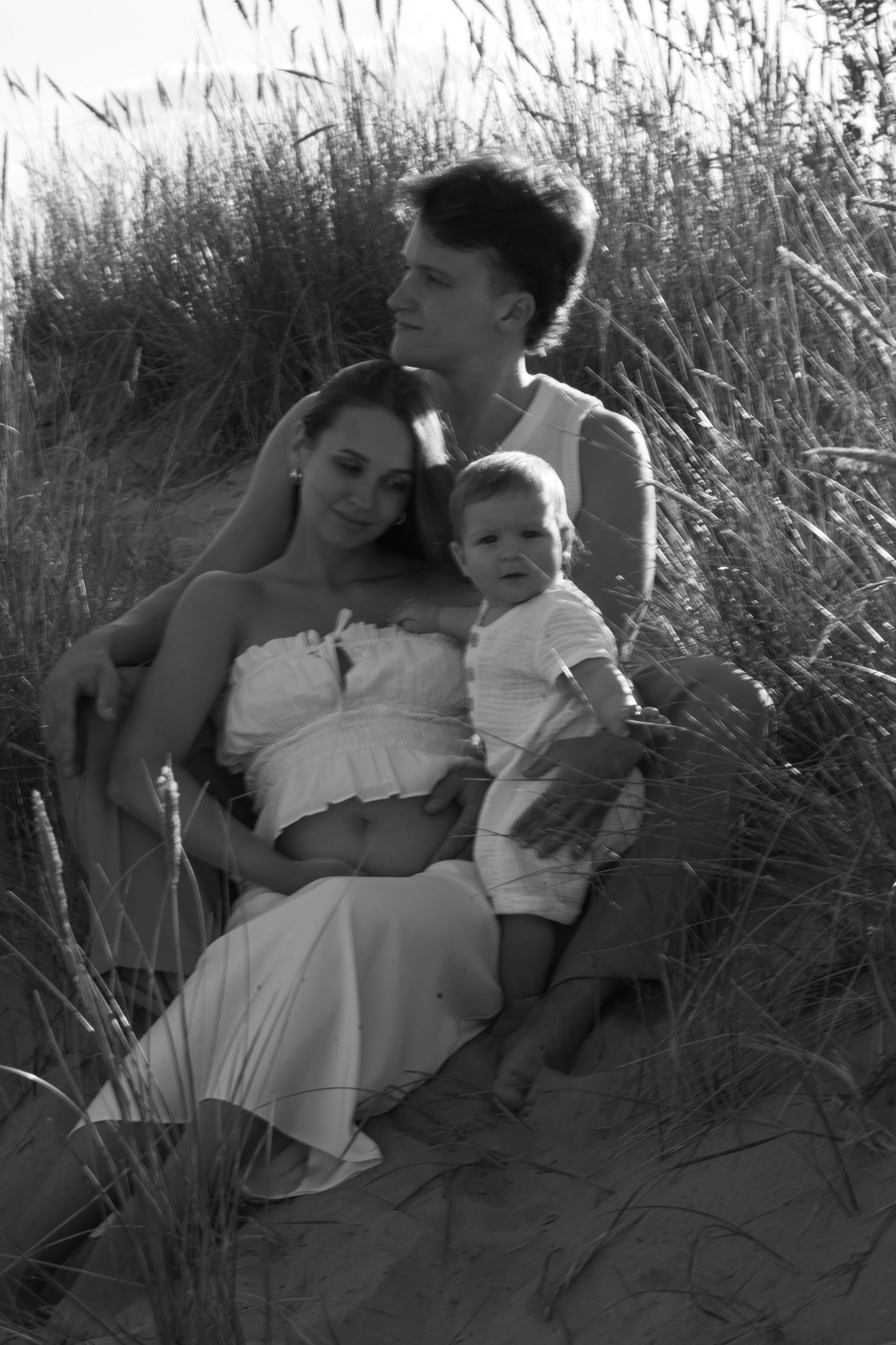 A family photoshoot on a sunny summer day with warm and joyful moments.