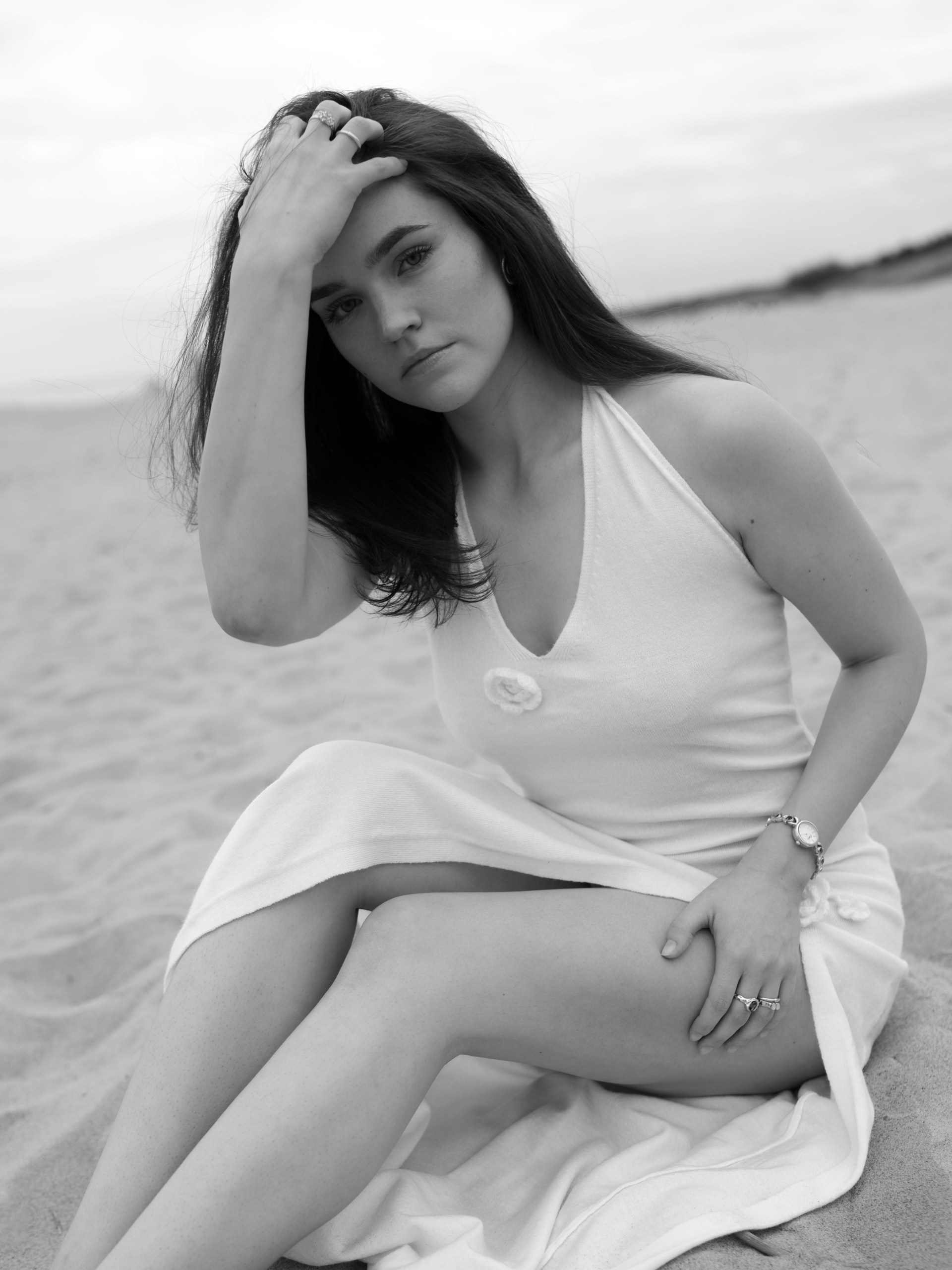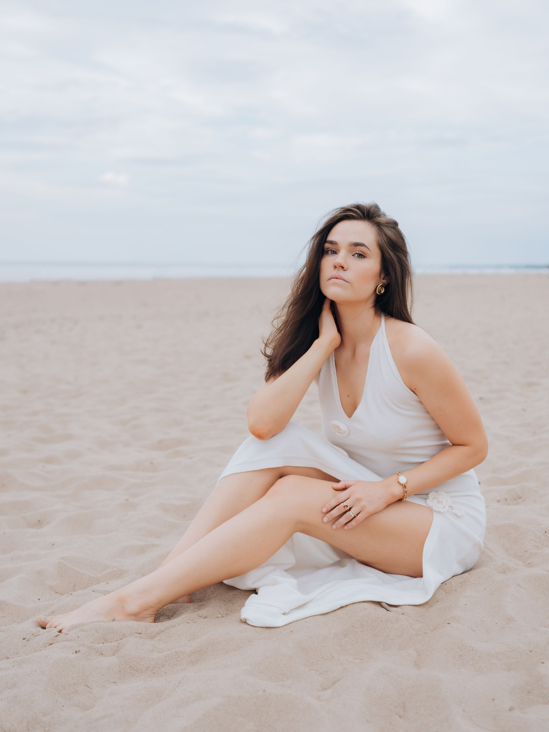 Portrait photography by the sea with soft light and dreamy touch.